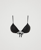 Haut de maillot de bain triangle ampliforme avec bonnets amovibles et application de strass siglés logo Oval T.