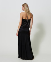 Pleins feux sur la jupe longue qui devient la pièce clé de looks actuels et élégants. Twinset la réinterprète dans ce modèle réalisé en satin de viscose opaque, construite avec des pans verticaux évasés dans le bas. Non doublée, elle présente une coupe ample, une fermeture éclair et une grande fente sur le côté. Portez-la avec le top coordonné pour arborer un style délicat et tendance.