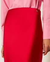 Jupe longue de la collection Actitude en satin découpé en biais qui épouse la silhouette. Elle présente une taille élastique et une coupe droite.
