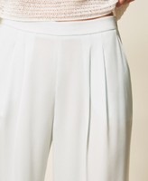 Pantalon en satin avec plis sur le devant, fermeture éclair sur le côté, élastique à l’arrière de la taille, poches italiennes et coupe ample. Parfait pour une fête ou une cérémonie.