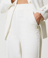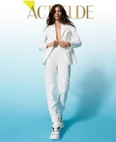 Une interprétation inédite du jogging. Pantalon en tissu technique fluide avec fermeture éclair sur le côté, poches italiennes, bas élastique et pli marqué. À porter coordonné au blazer pour créer un tailleur inédit.