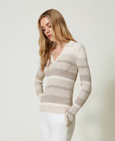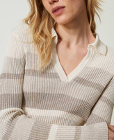 Pull ajusté en fil mélangé de coton, viscose et lurex tricoté en point vanisé avec mélange de rayures dégradées et col polo.