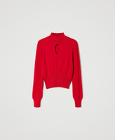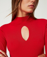 Pull col montant sans coutures en viscose stretch, avec ouverture sur le devant, col et poignets côtelés, coupe ajustée.