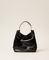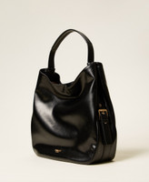 Besace effet cuir de veau verni semi-brillant avec grain à l’aspect naturel. Elle présente des boucles siglées sur les côtés, une fermeture avec aimant central, une anse pour un porté épaule et une inscription siglée dorée sur le cadre avant. Doublure et poches intérieures.