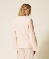 Blouson en mélange de lin et lyocell avec grandes fentes sur les manches. Il présente un col à revers, une fermeture boutonnée croisée, des poches à rabat sur le devant, une doublure en coton et une coupe droite.