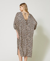 Caftan long en satin de viscose avec imprimé animalier, encolure en V et manches 3/4.