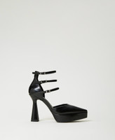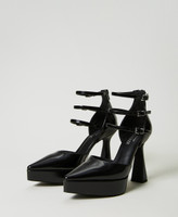 Escarpins de la collection Actitude avec plusieurs brides à la cheville, plateforme et talon bobine.