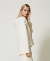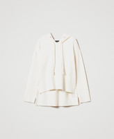 Pull de la collection Actitude en viscose mélangée au toucher chaud avec application de grandes perles assorties réalisée à la main. Il présente une capuche réglable avec cordon de serrage, un bas asymétrique plus long dans le dos et une coupe fluide.