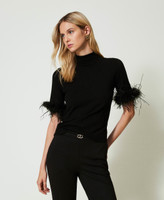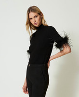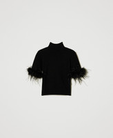 Pull en viscose mélangée stretch avec manches courtes rehaussées d’un bord amovible en plumes assorties, col montant, étiquette siglée Oval T en métal dans le dos et coupe regular.
