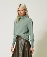 Pull col roulé sans coutures en cachemire avec manches froncées, poignets côtelés et coupe regular.