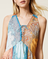 Robe longue sans manches en crépon léger avec imprimé patchwork bandana, cordon coulissant à l’encolure, doublure.