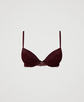 Soutien-gorge push-up en dentelle de Chantilly avec bonnets préformés dotés de coussinets amovibles, bretelles réglables et siglées.