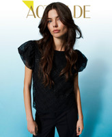 Glamour et inattendu. T-shirt regular en jersey de coton doublé de tulle brodé de sequins et d’un fil à carreaux, avec manches ballon froncées et col rond. Il donnera du caractère à vos tenues du matin au soir.