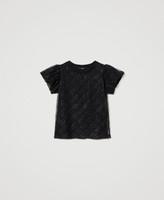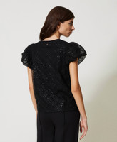 T-shirt regular de la collection Actitude en jersey de coton doublé de tulle brodé de sequins et d’un fil à carreaux, avec manches ballon.