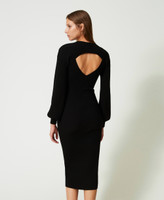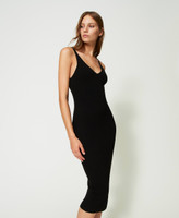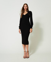 - Il coprispalle ha una linea morbida, l'abito è fitted.