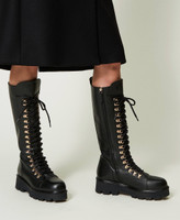 Anfibi alti in pelle con allacciatura trekking, zip interna e fondo in gomma.