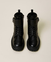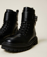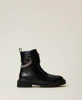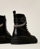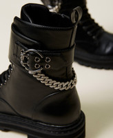 Anfibi collezione Actitude effetto pelle con cinturino e fibbia tonda, catena décor, zip laterale interna.