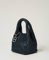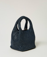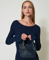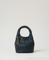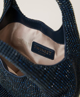 Borsa 'Rendez-Vous' in maglia morbida di strass con fondo in tinta, doppio manico a mano, chiusura con magnete, personalizzata da charms con catena e ciondolo a Oval T con strass incastonati, foderata. Perfetta per party e cerimonie.
