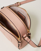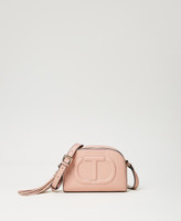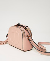 Borsa effetto nappa di vitello morbida con Oval T a rilievo, doppia zip, tracolla regolabile, charm a nappa.