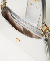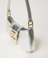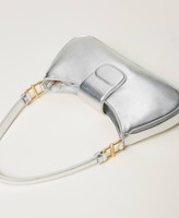Borsa hobo ‘Amie’ in pelle di vitello liscio laminato argento con logo Oval T in metallo. Ha la chiusura con cinturino, magnete e zip, manico con portata a mano o a spalla, attacchi décor in metallo, galvaniche color oro satinato, foderata.