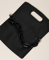 Borsa multitasking seasonless. Design morbido e ripiegabile che permette una tripla portata: in stile shopper con il manico, a spalla con la maxi catena in resina, oppure a mano come clutch. È sfoderata e personalizzata dal logo ricamato su entrambe i quadranti.