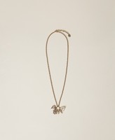 Collana in metallo con lavorazione torchon, mix di pendenti e perla, chiusura regolabile con moschettone e placchetta logo.