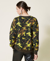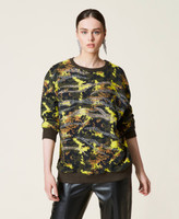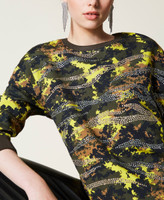 Felpa ampia collezione Actitude in cotone a stampa camouflage con motivo di striature realizzate con borchie termoadesive.