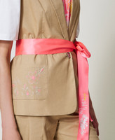- 94% cotone 6% lino. Fodera: 100% cotone. Cintura: 100% poliestere. Ricamo: 100% poliestere