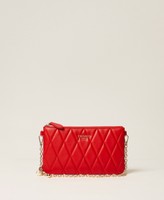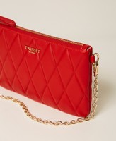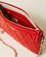 Mini borsa effetto nappa di vitello liscio con lavorazione quilted realizzata con stampa a caldo. Ha chiusura con zip, logo lettering in metallo, tracolla rimovibile in catena con charms.
