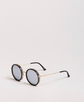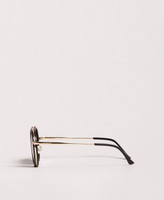Occhiali da sole con montatura tonda, finiture a contrasto e custodia abbinata.