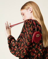 Pochette portamonete rotonda con zip, logo Oval T, moschettone e tracolla rimovibile.
