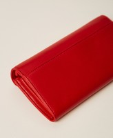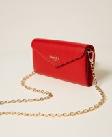Portacellulare effetto nappa di vitello liscio con logo lettering in metallo. Ha chiusura con patta e bottone, tracolla in catena rimovibile, comparti interni.