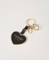Portachiavi a cuore con logo lettering a contrasto, cinturino, moschettone, anello e charm con logo Oval T.