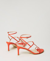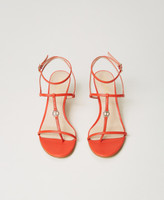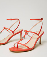 Sandali alti con inserto logo Oval T in metallo, cinturino alla caviglia e fondo in tunit.