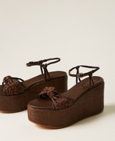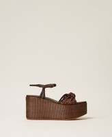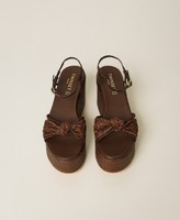 Sandali con tomaia intrecciata e nodo, cinturino alla caviglia, wedge platform fasciato in tinta, fondo in tunit.