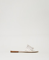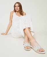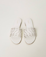 Sandali slide in pelle con decori laser sulla fascia e fondo in tunit.