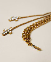 Set di collante composto da choker con logo Oval T regolabile e nappe, e da rosario con croci pendenti.