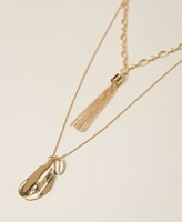 Set di collane in catena con ciondoli metallici e nappa. Chiusura regolabile a moschettone.