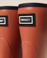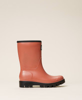 Stivali da pioggia in gomma con etichetta logo frontale e gambale a tubo.