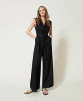 - 83% viscosa 17% lino. Fodera tasche: 68% acetato 32% poliestere. Cintura: 83% viscosa 17% lino
