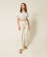 Trova i pantaloni donna che fanno per te all'interno della collezione di Twinset: classici ed eleganti, a palazzo o cropped, con stampe originali o fantasie floreali, preziosi con ricami e inserti.
