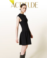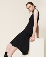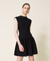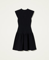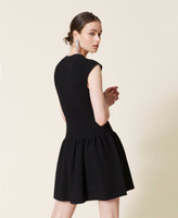 Abito corto collezione Actitude in viscosa stretch mano crêpe seamless con bustino fitted e maniche ad aletta con gonna a pieghe.