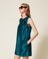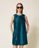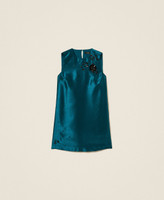 Abito corto in shantung con ricamo a mano