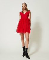 Abito corto collezione Actitude in tulle, senza maniche, con elastico in vita, gonna con volant verticali, foderato.