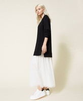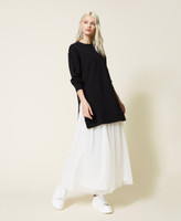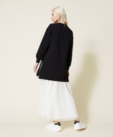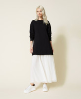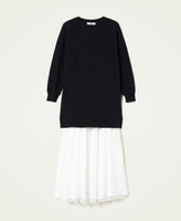 Abito in felpa di cotone con maniche lunghe e polsini in costina, sottoveste lunga in tulle.