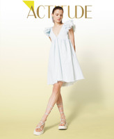 Abito lungo collezione Actitude in jeans leggero con scollatura a V, maniche ad aletta con doppia balza sfrangiate.