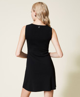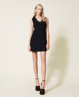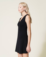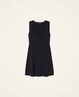 Abito corto collezione Actitude in viscosa opaca con scollo a V rifinito da punto traforato e smerli.
