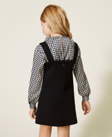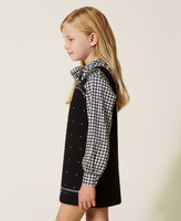 Bon-ton inedito per l’abito da bambina in tessuto scuba con applicazione di borchie termoadesive davanti e retro liscio. Ha linea leggermente svasata, spalline ampie, zip al fianco, ed è sfoderato. Abbinalo a blusa stampata e stivaletti per un’occasione speciale.