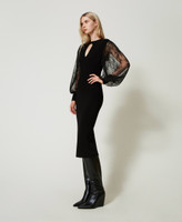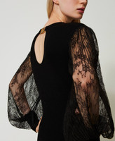 Abito longuette in maglia e pizzo