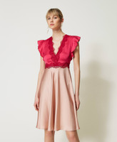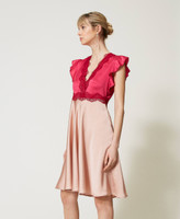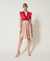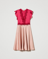 Abito longuette in raso e pizzo